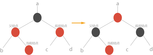 结点的颜色由红变黑或由黑变红。